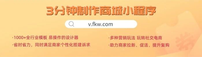如果不懂开发,也希望可以费用更具性价比,也有更多的需求,例如想有更详细的数据统计、会员功能、多种营销功能的话,可以选择第三方商城小程序制作平台(v.fkw.com),1000+行业商城模板0元免费用,600+功能控件,150万+商家的信赖之选,易操作的设计器,省时省力,同时满足商家个性化搭建诉求。