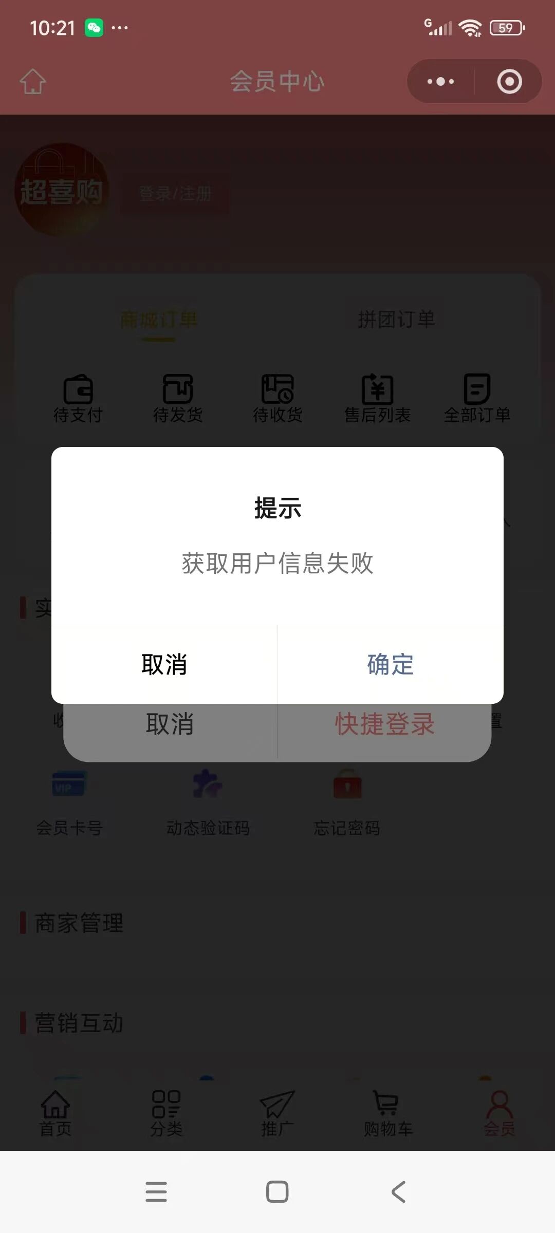明显就是wx.login或者wx.getUserInfo报错了啊,跟审核和私隐无关啊,就是代码问题,key和secret有没有搞错,查看在开发工具里面看console一眼就查得出来