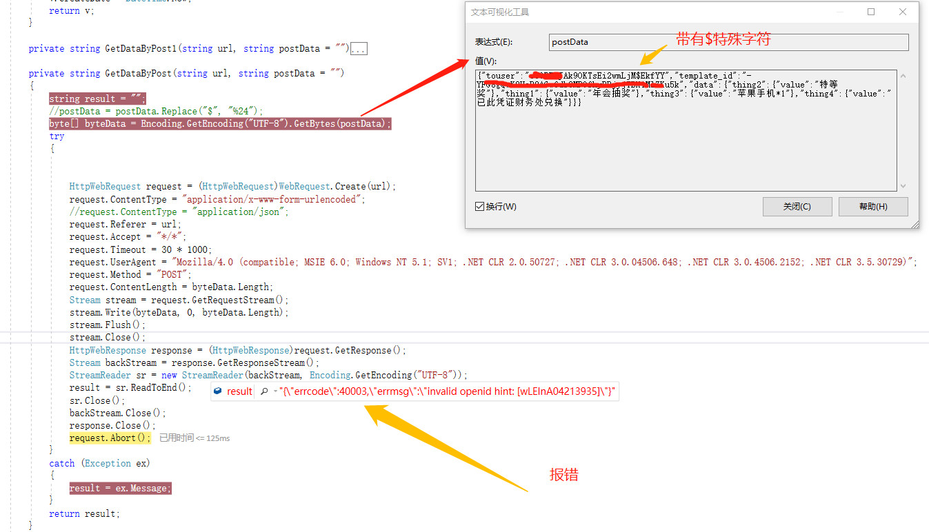 小程序发送一次性订阅消息:如果openid不带特殊字符,那么发送模板消息就是正常的(可以正常收到信息),如果传过去的postdata 中的参数openid带有$符号就会报错: