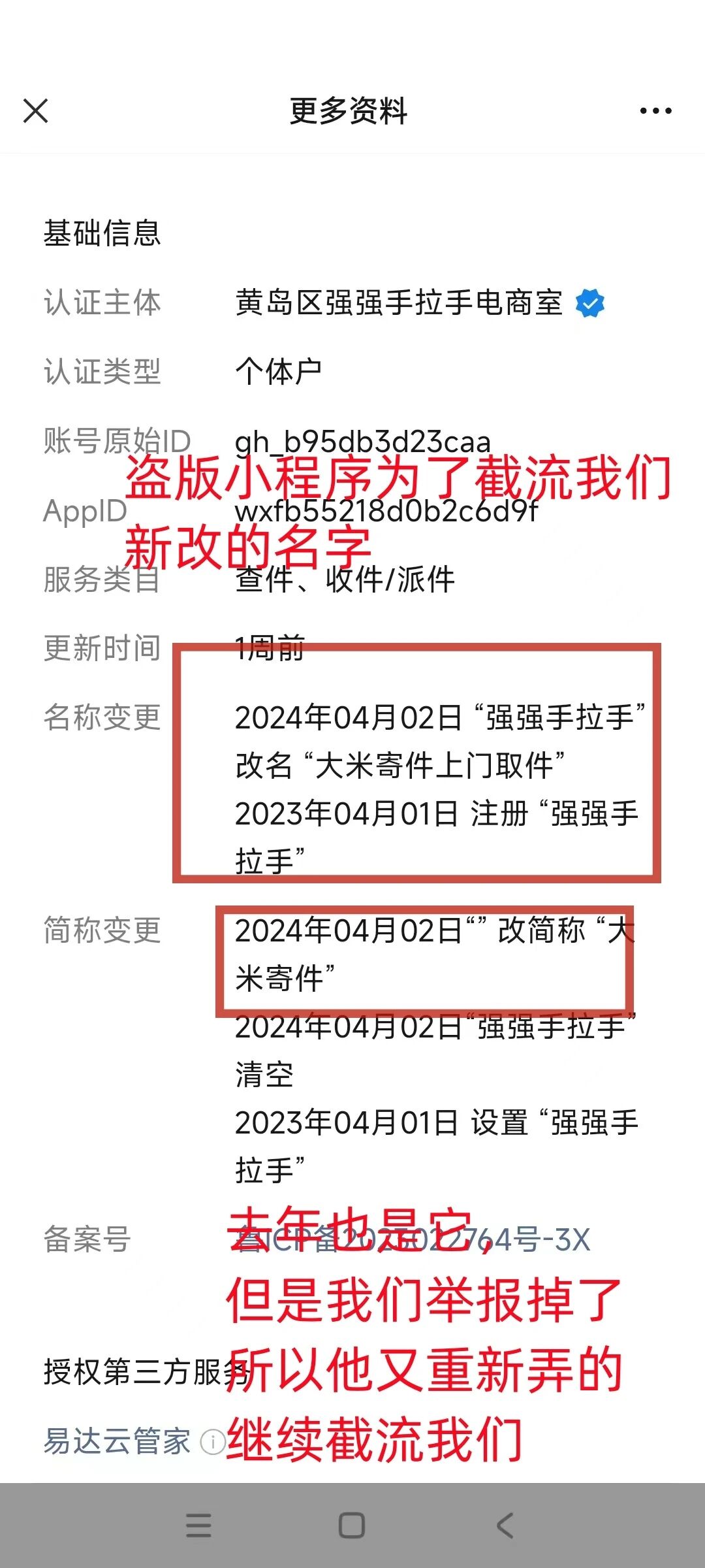 感谢官方当时的援助,4月2号同一个人再次恶意改名了个用于截流的小程序截流我们