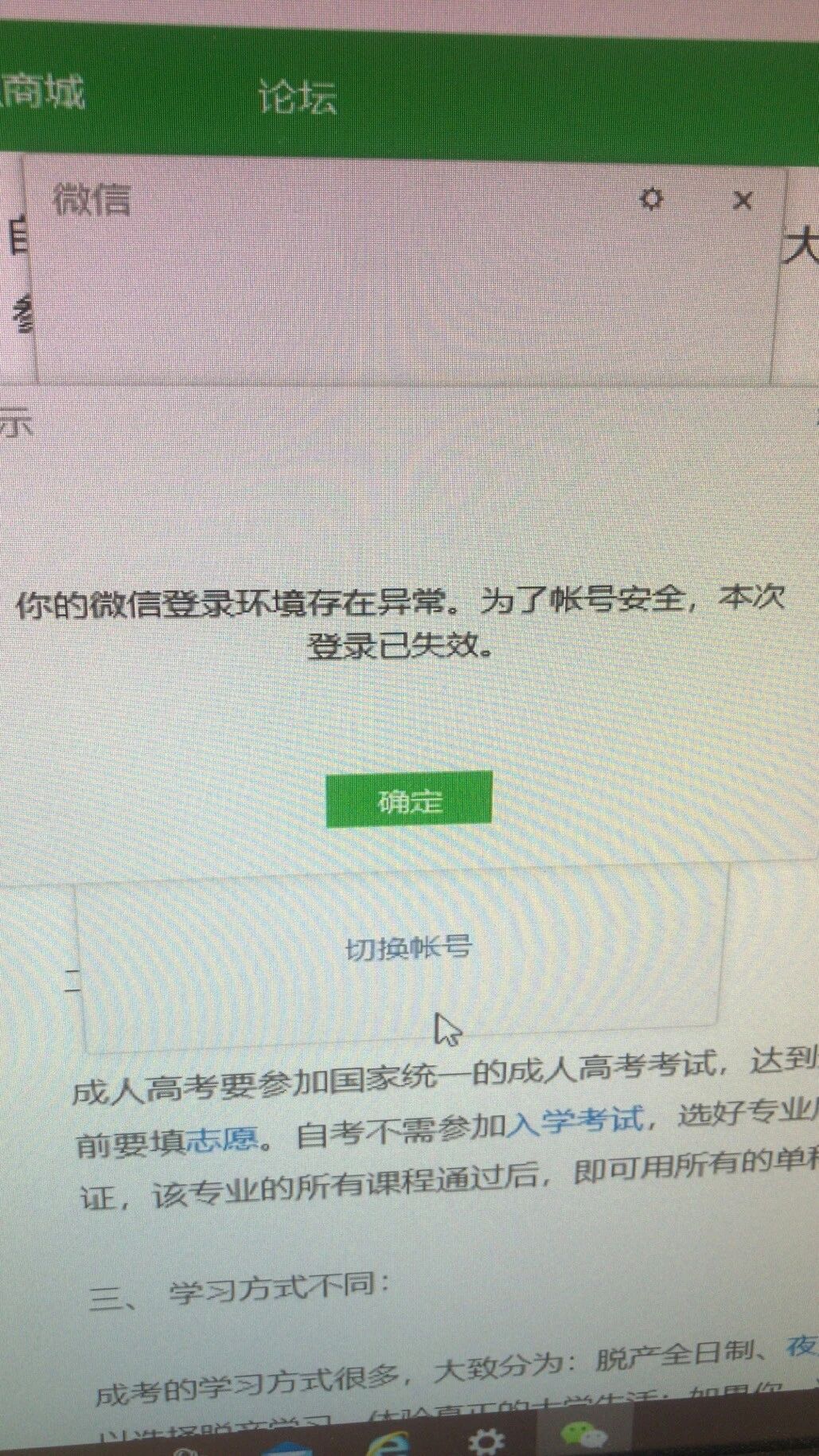 电脑登录微信提示登录环境异常,再次登录再次异常,换个电脑也异常,麻烦查看一下,谢谢了、微信号N25698