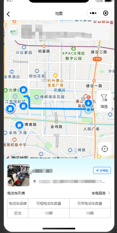 理由:因为当前业务设计共享电单车服务,需要查看附近可用的车辆,并且支持导航到电动车或门店附近,完成共享场景的闭环。