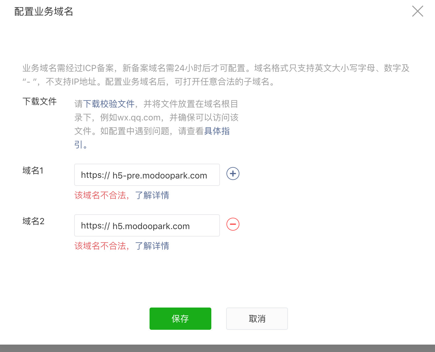 在小程序开发设置中添加业务域名报域名不合法,之前添加成功的域名也会报这个错,什么原因?