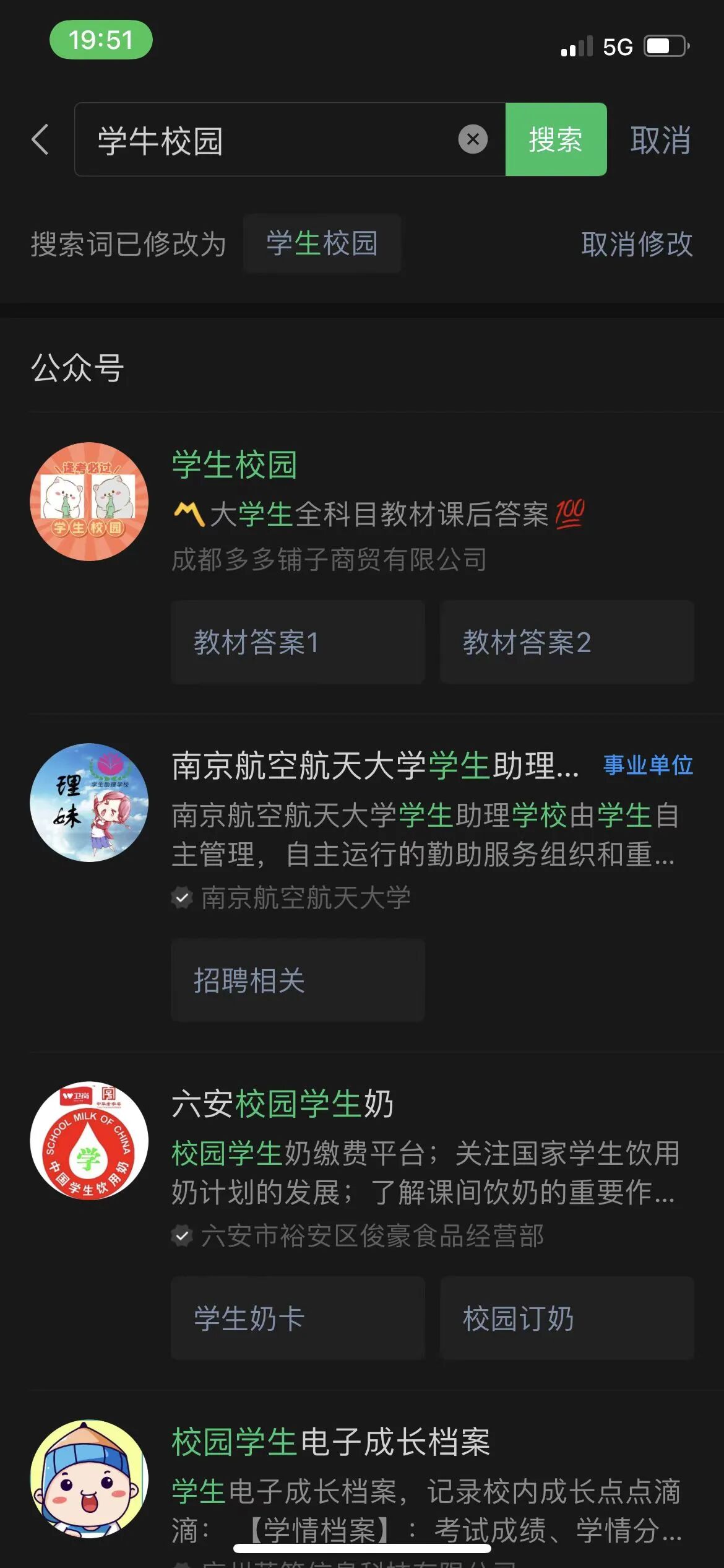 我们公众号客户搜索时,被智能修改为同音字,这样对我们造成了巨大影响,公众号名称:学牛校园。搜索时被系统修改为学生校园,这个怎么处理?原始id:gh_aec3600c0c50 然后自己修改后的微信号id:XN221012 公众号名称:学牛校园