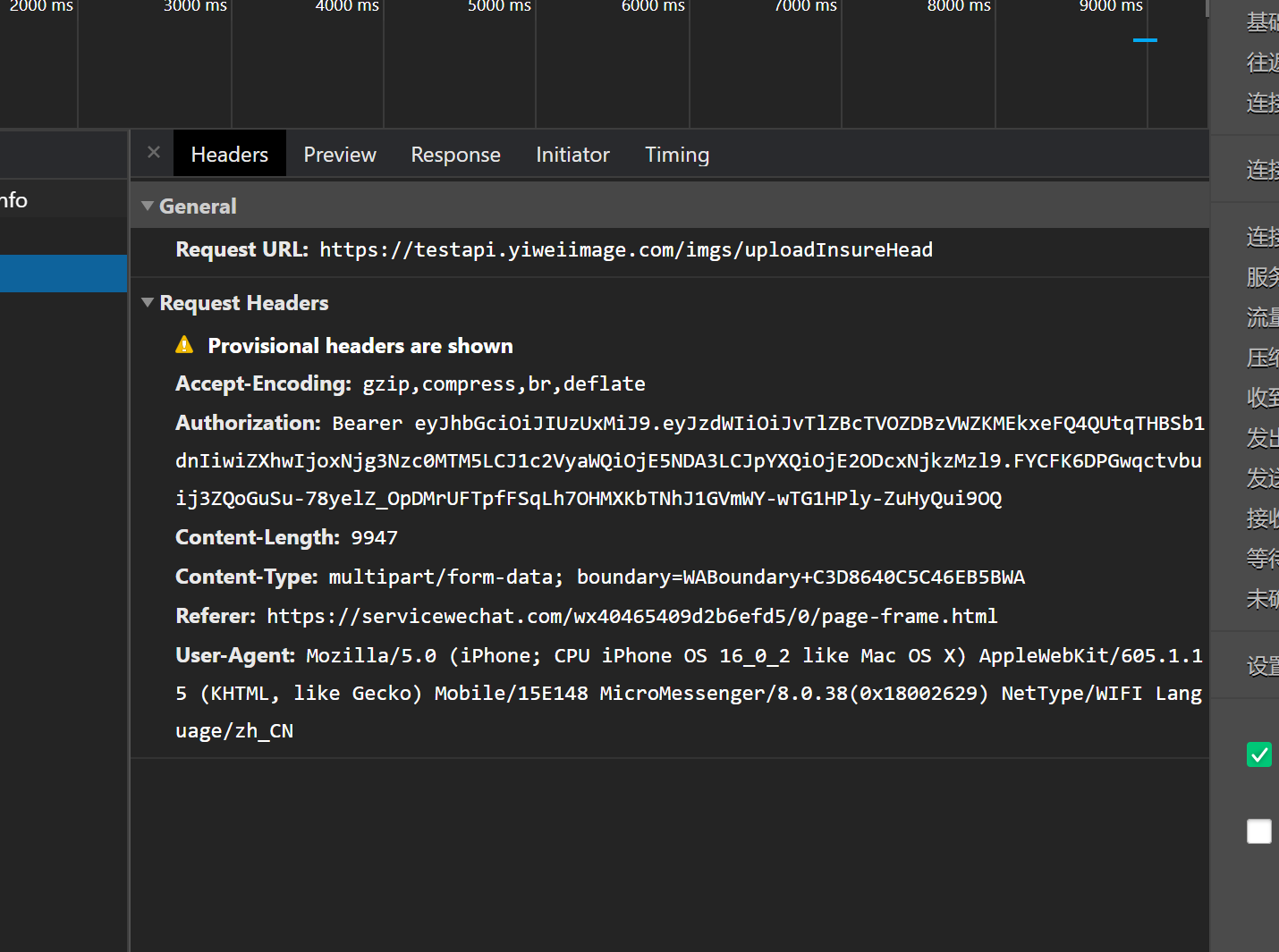 真机测试使用安卓没有问题,苹果手机出现Provisional headers are show堵塞请求。