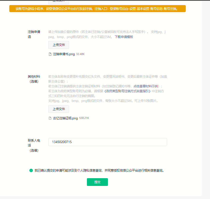 第一步:进入https://mp.weixin.qq.com/webpoc/accountBack,业务情景选择【注销】