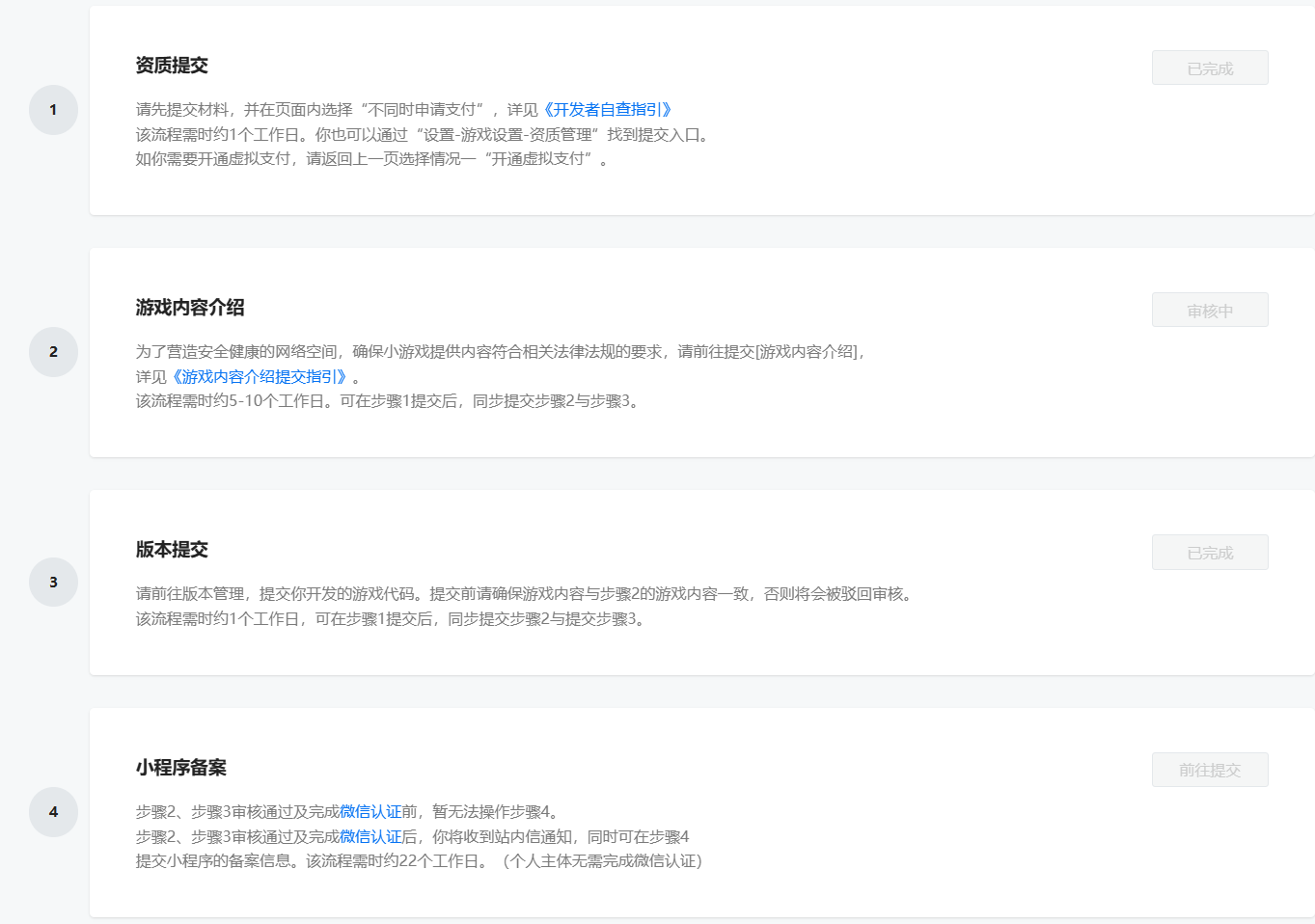 游戏介绍内容内容审核提示通过了,可小游戏备案那里显示还是审核中,无法备案。