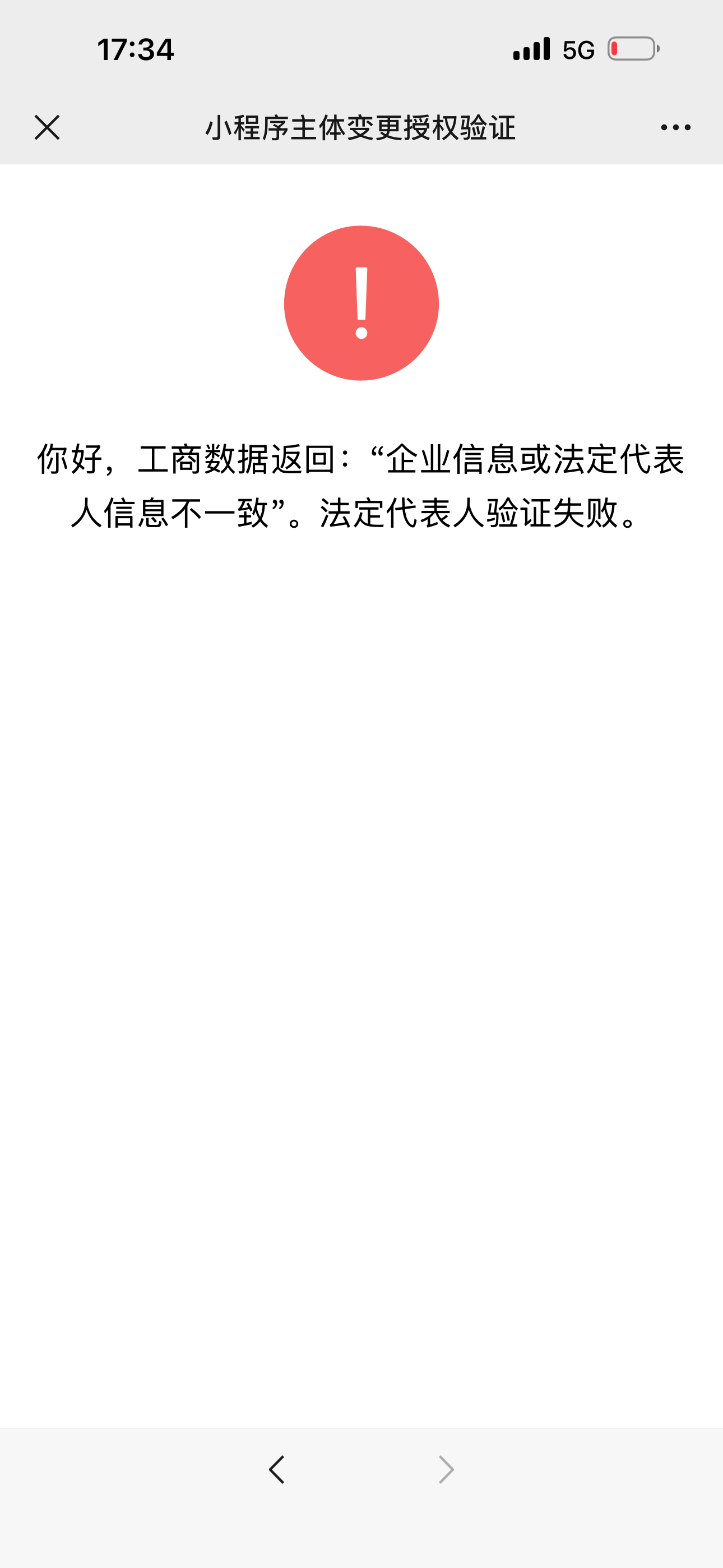 如图,之前是个人注册的ID,现在想变更成公司主体的,资料上传都没问题,到最后一步法人人脸识别的时候一直显示“企业信息或法定代表人信息不一致”,法定代表人验证失败,我们上传的营业执照跟法人都是正确的,求助