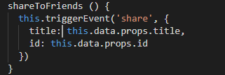 目标效果:封装了一个组件,在里面触发了一个自定义事件,然后在页面中监听这个事件,展示出分享的弹出框
