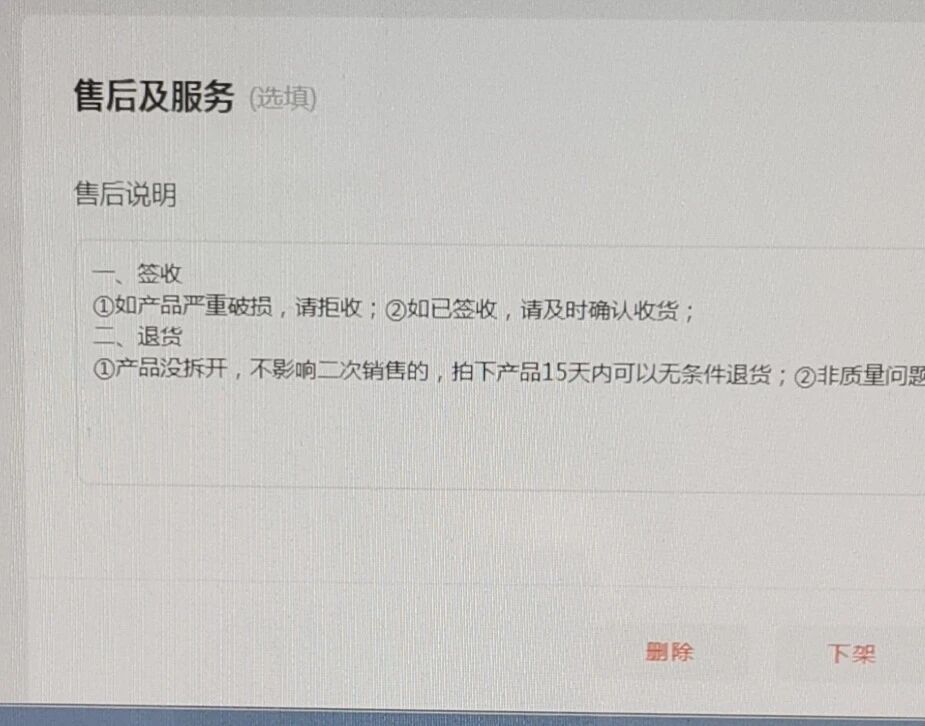 售后及服务说明在后台已经设置,但是前端没有显示,请尽快处理!