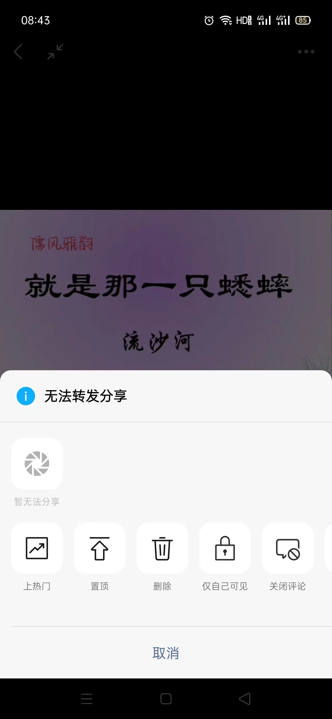 您好,视频号里的视频不能转发。时长5分钟,视频名称《就是那一只蟋蟀》,诗歌朗诵