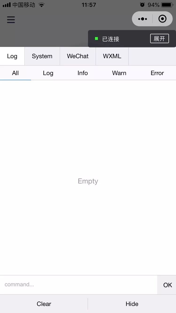 请问解决了没?我的也看不了LOG,很郁闷,手机上只能在第二次启动才能看到控制台,但现在我代码有个错误就是在第一次启动才会报错。。。。