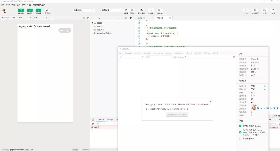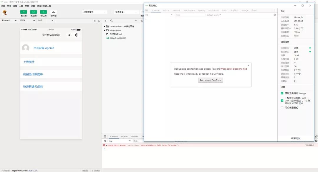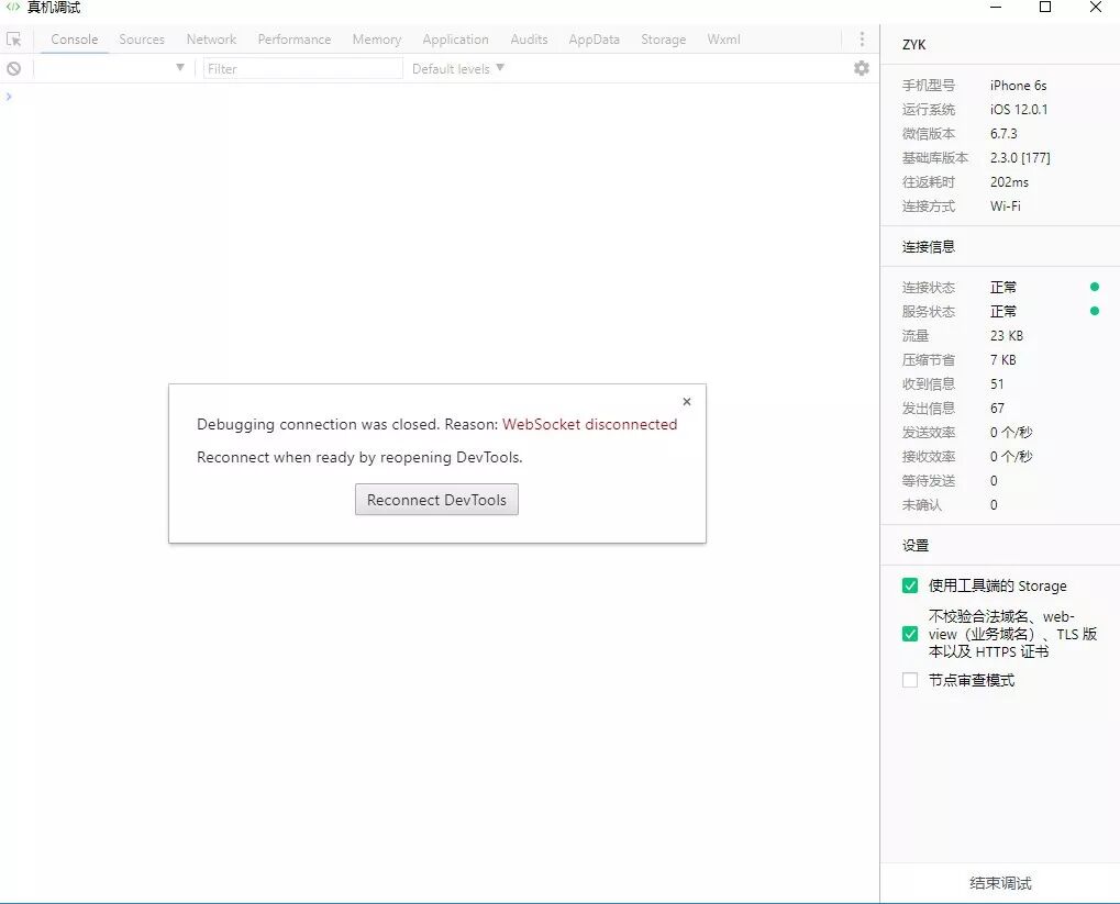 试下点击菜单栏微信开发者工具 - 调试 - 调试微信开发者工具,看看有无报错信息输出呢