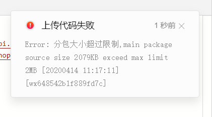微信开发者工具上传小程序前端包时提示分包大小超过限制,请问怎么处理?