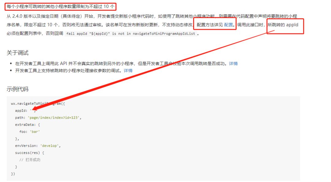 https://developers.weixin.qq.com/miniprogram/dev/api/wx.navigateToMiniProgram.htm,这是跳转小程序的文档