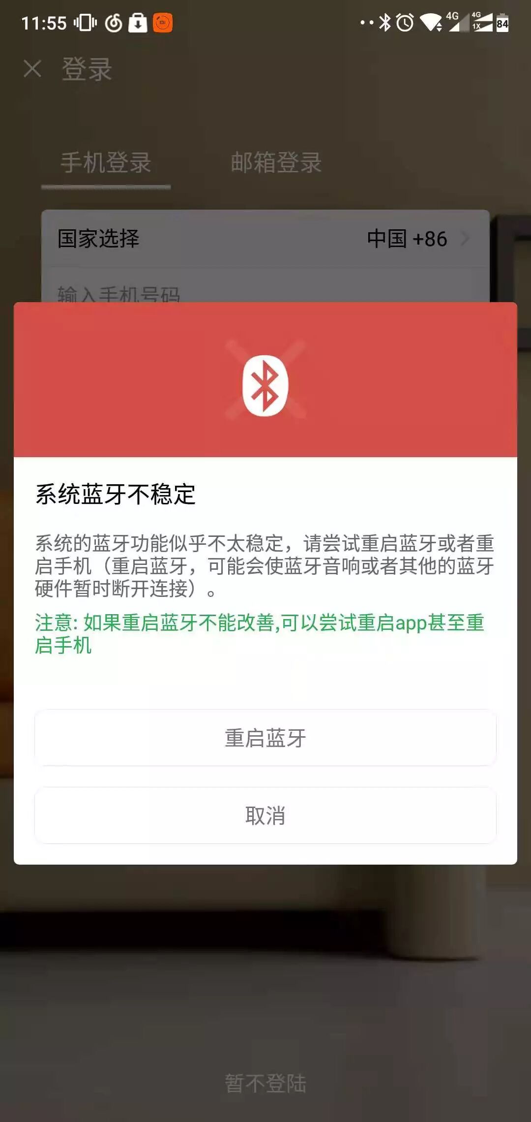 蓝牙跟定位是打开的,您说的这个软件提示这个。点击取消搜索不到设备(手机系统能搜索到设备)。
