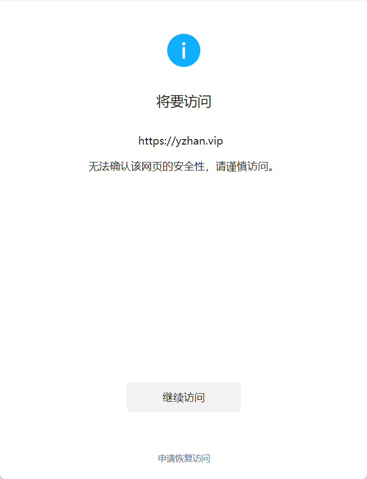无法确认该网页的安全性,请谨慎访问。并没有不安全的内容,申请解除继续访问限制,恢复微信内的直开权限
