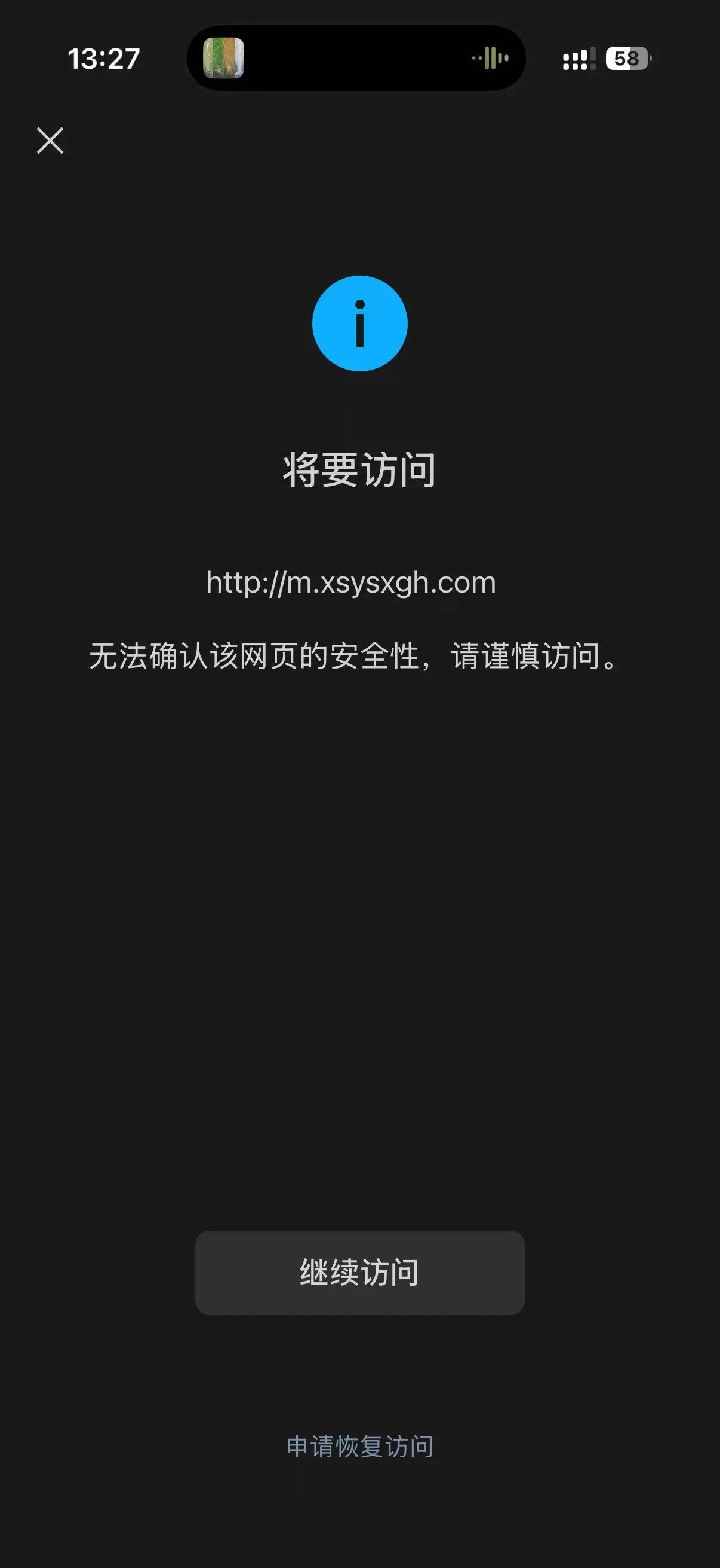 您好,域名xsysxgh.com在西部数码注册并通过优刻得备案通过,http://m.xsysxgh.com/浏览器访问正常,我是网站开发者,访问时间如图2026/2/5,点开网址提示“无法确认该网页的安全性,请谨慎访问。”经检查网页里没有不安全的内容,请核实后帮忙解除拦截,谢谢!尽快处理,急急急,现在需要打开使用,谢谢!