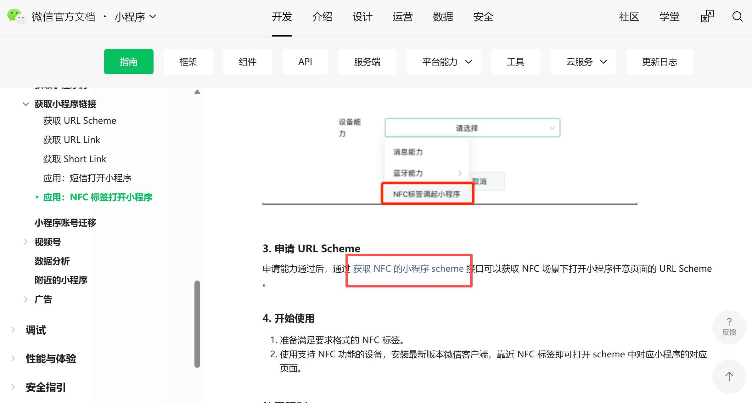 NFC标签打开小程序对接文档https://developers.weixin.qq.com/miniprogram/dev/framework/open-ability/NFC.html,中的【申请URL Scheme】步骤中的接口文档链接坏了,可否更新下?谢谢