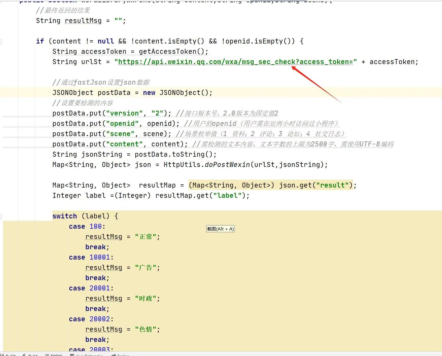 我也出现了同样的问题,博主解决了吗?这是我提交的内容:{"content":"彼时若互裸朋友,一个也不视频应声","version":2,"scene":2,"openid":"oF9gC5sVnaopI09UMBZS3NAqFDFg"},下面这是提交微信后台接口返回的数据