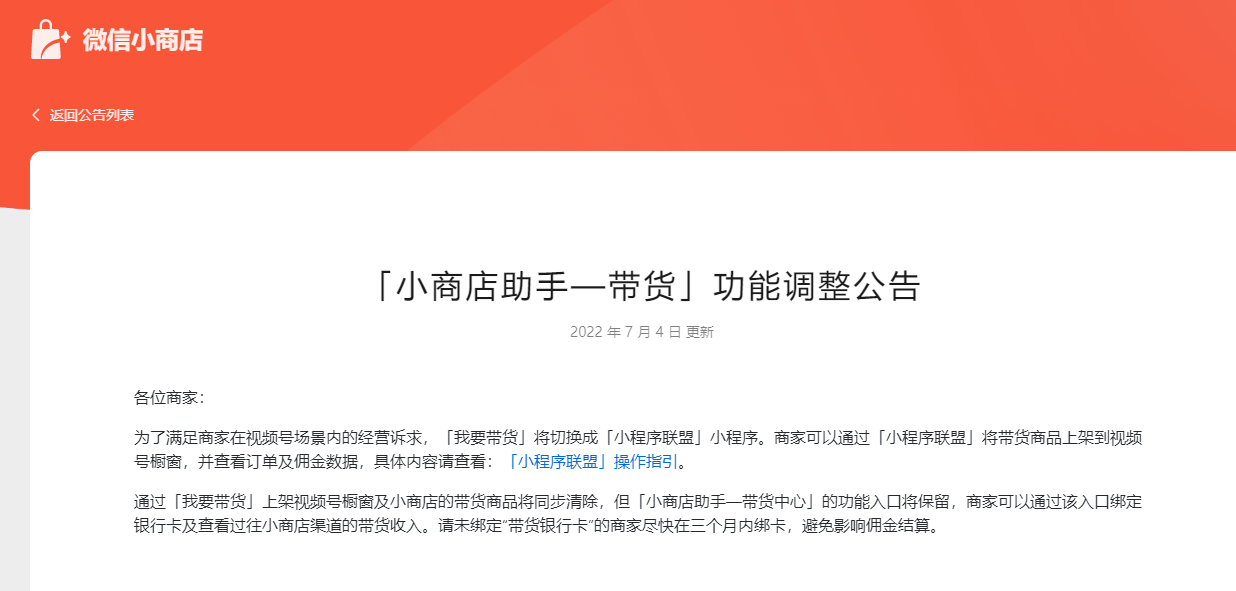 小商店的带货很早就禁掉了,目前只能视频号带货了