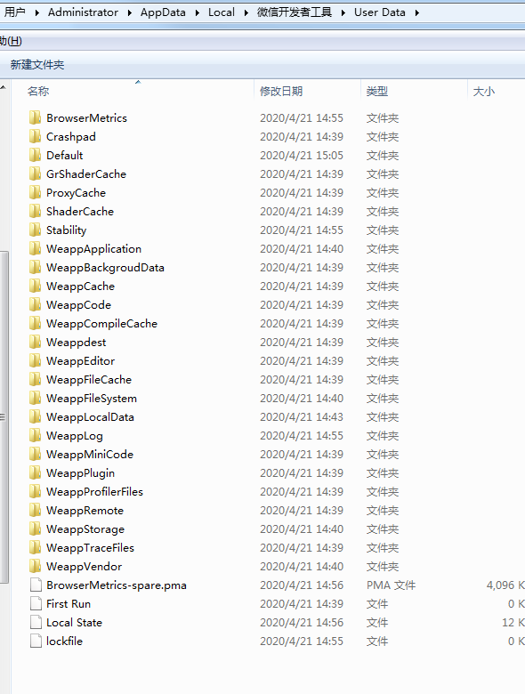 ~/AppData/Local/微信开发者工具/User Data/Default/.ide