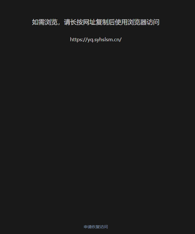 你好,经核实,域名【syhslsm.cn】下的链接【https://yq.syhslsm.cn/#/pages/my/my】的内容严重违反《微信外部链接内容管理规范》的第3.2条“恶意对抗类内容”,无法恢复微信内直接访问的服务。