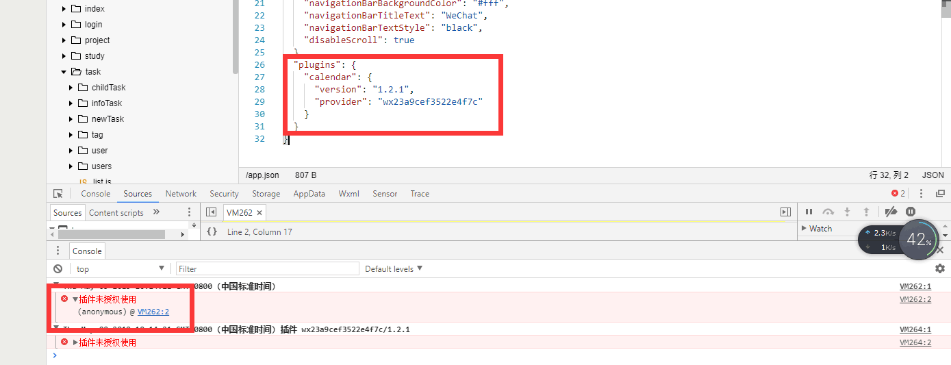 "plugins": { "chooseLocation": { "version": "1.0.2", "provider": "上图提供的appID" } }, "permission": { "scope.userLocation": { "desc": "你的位置信息将用于小程序定位" } }