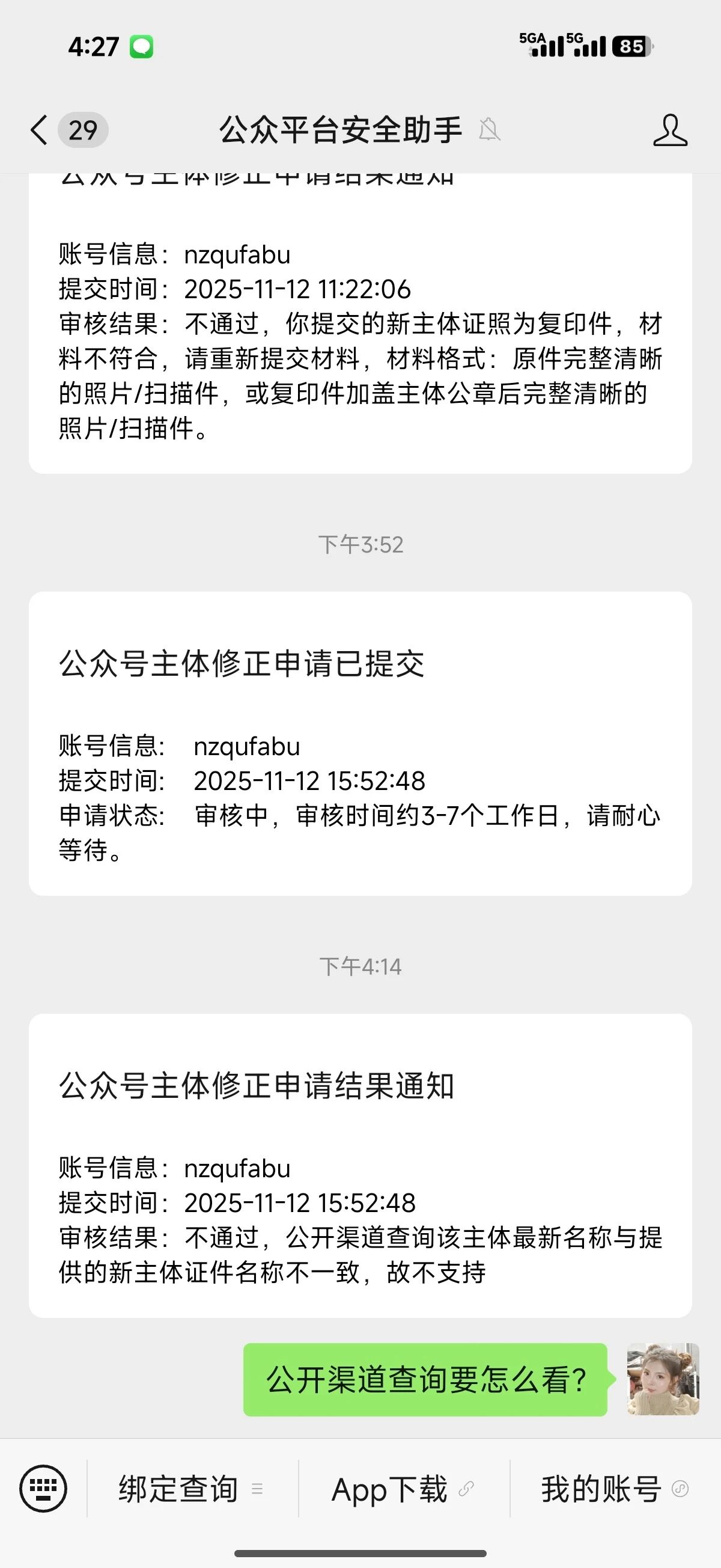 一直说 公开渠道查询该主体最新名称与提供的新主体证件名称不一致,故不支持,应该在哪里看最新名称?