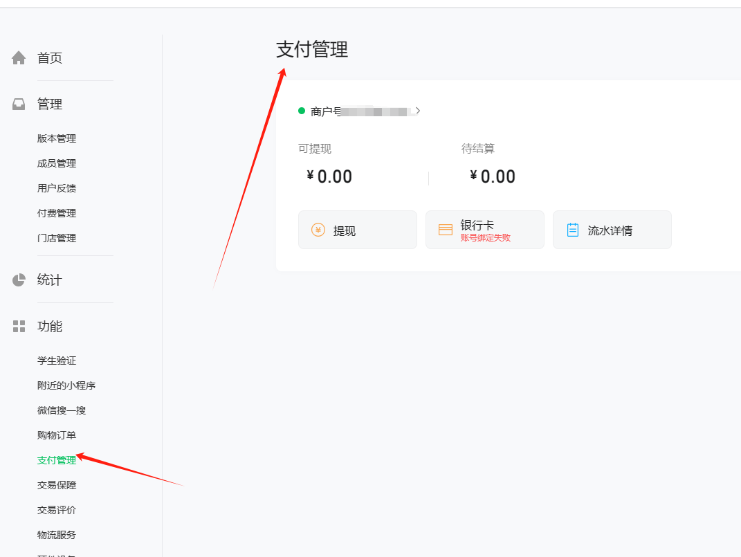 小程序后台如果是 微信支付 可以绑定不同商户号,如果被灰度到 支付管理 就不可以绑定。