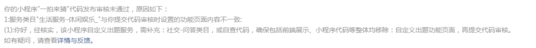官方大佬,你们好: 1. 你们一直审核说服务类目和页面功能不一致,我也换过我觉得比较匹配的3个类目,但还是一直不通过,那也请你们告诉应该选什么类目行不? 2. 一直让我们提供社交-问答类目,我们ICP还在申请,那我就先隐藏,你还是说不行,那我就把页面代码删掉,可你们还是一直让我们去移除代码,那请问我们应该去哪里移除呢?