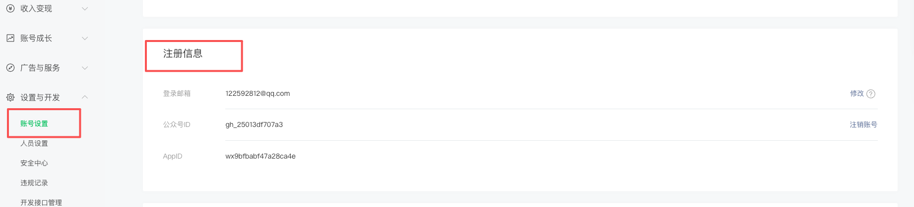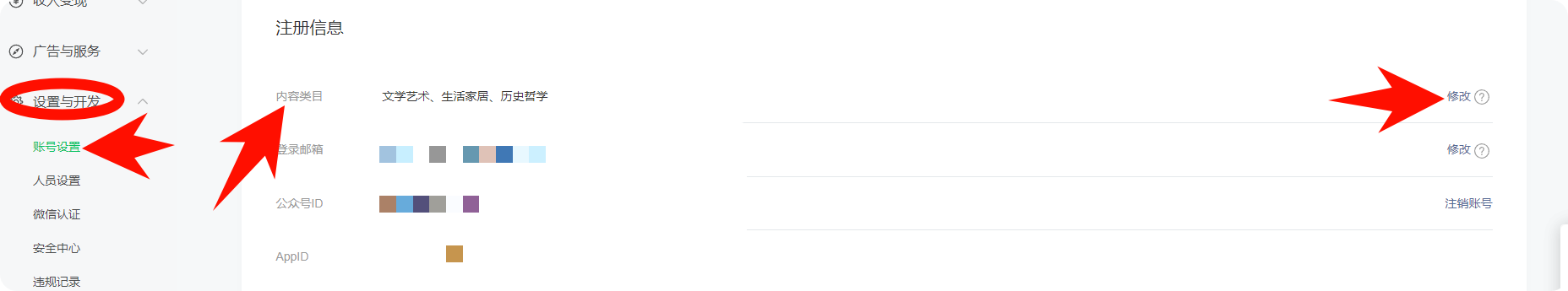 公众号注册选择的类型,与现在实际发布的文章内容不一致,请求变更