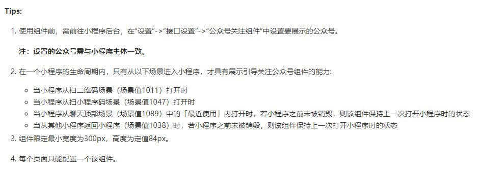 是什么情况下不显示呢?有满足条件吗?https://developers.weixin.qq.com/miniprogram/dev/component/official-account.html