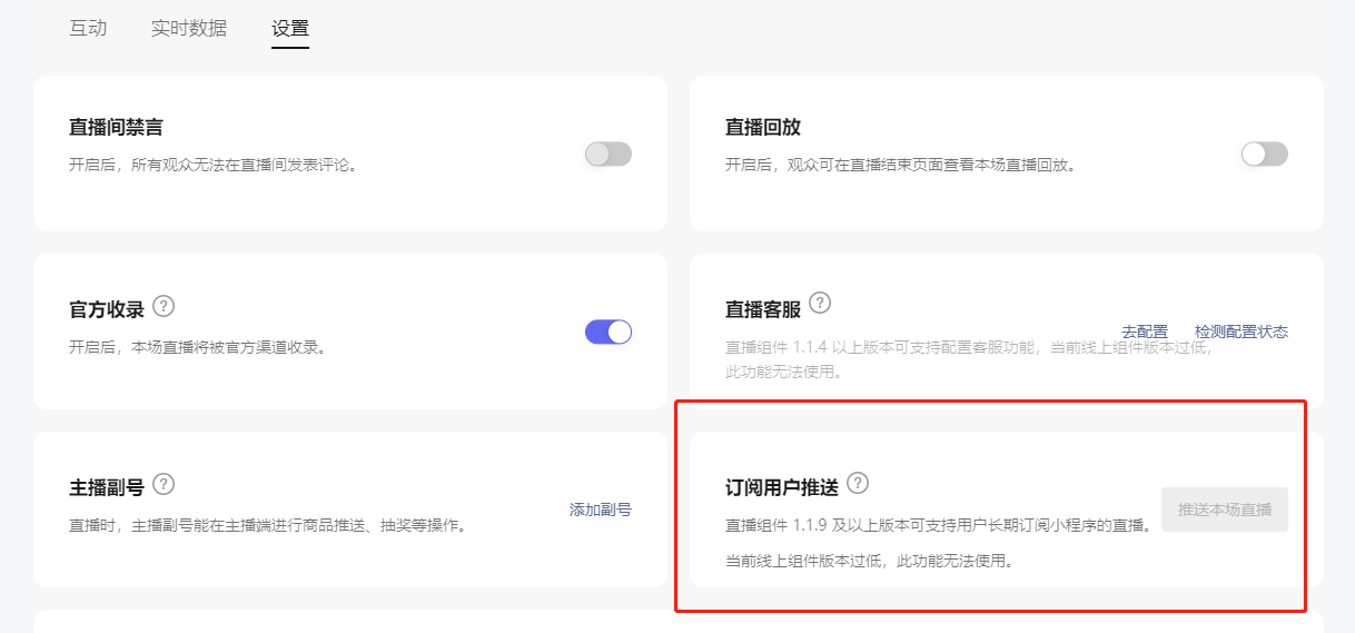 订阅用户推送,这个版本的直播插件在哪里添加和发布呀,直播一直找不到,是在哪个页面加的,麻烦个我一个指引,谢谢!!!