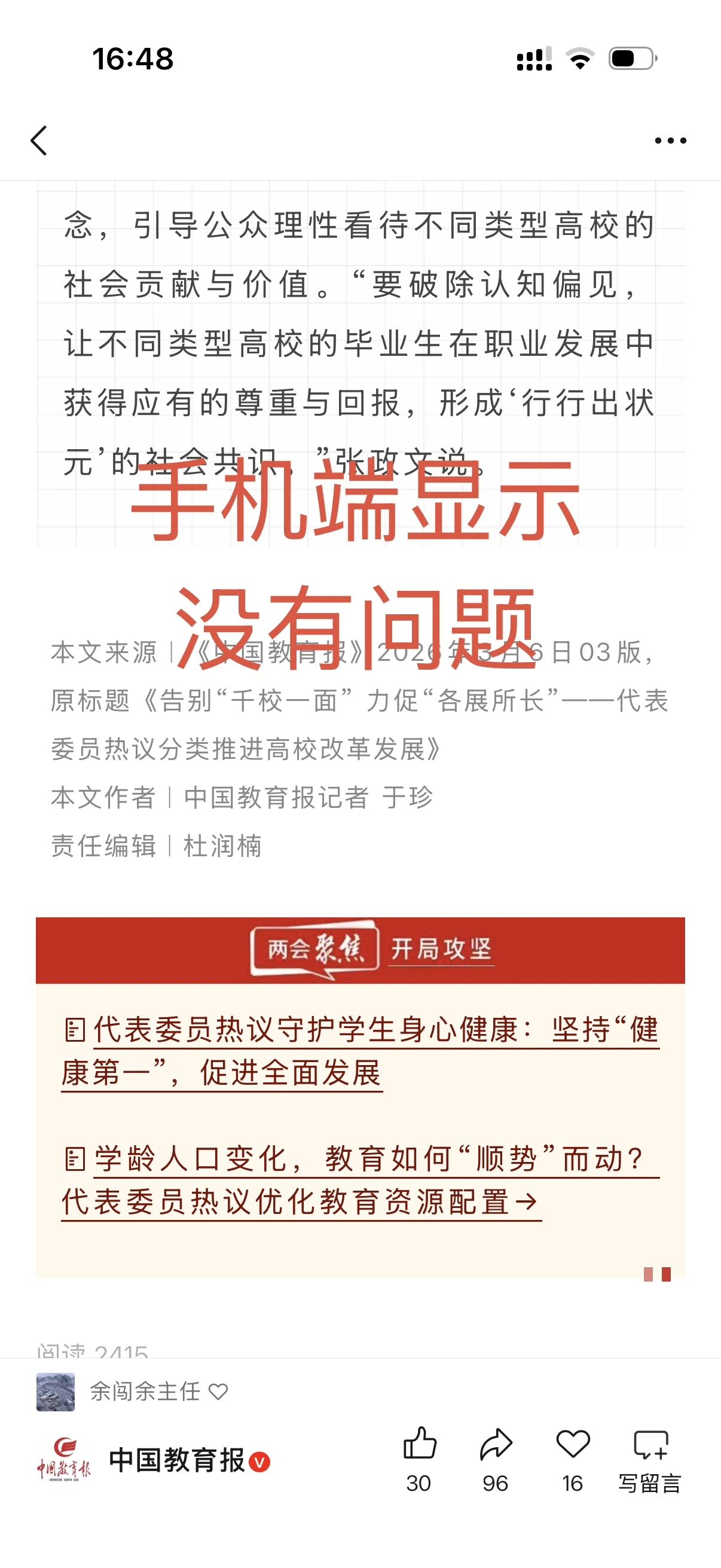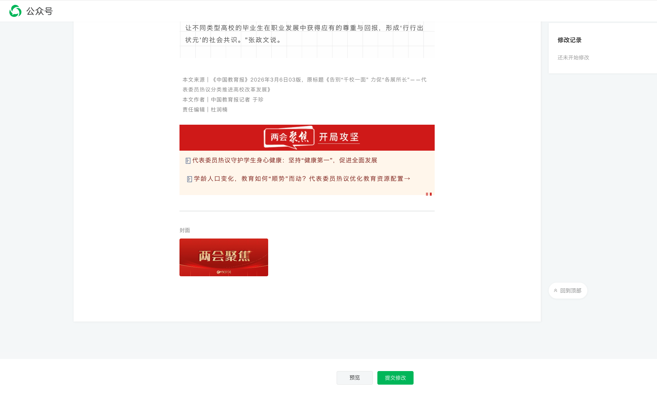 同样一篇文章在手机端显示格式没有问题,网页端则出现大段空格,很多文章都这样。在微信公众号后台想要修改则显示没有问题。