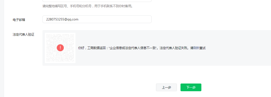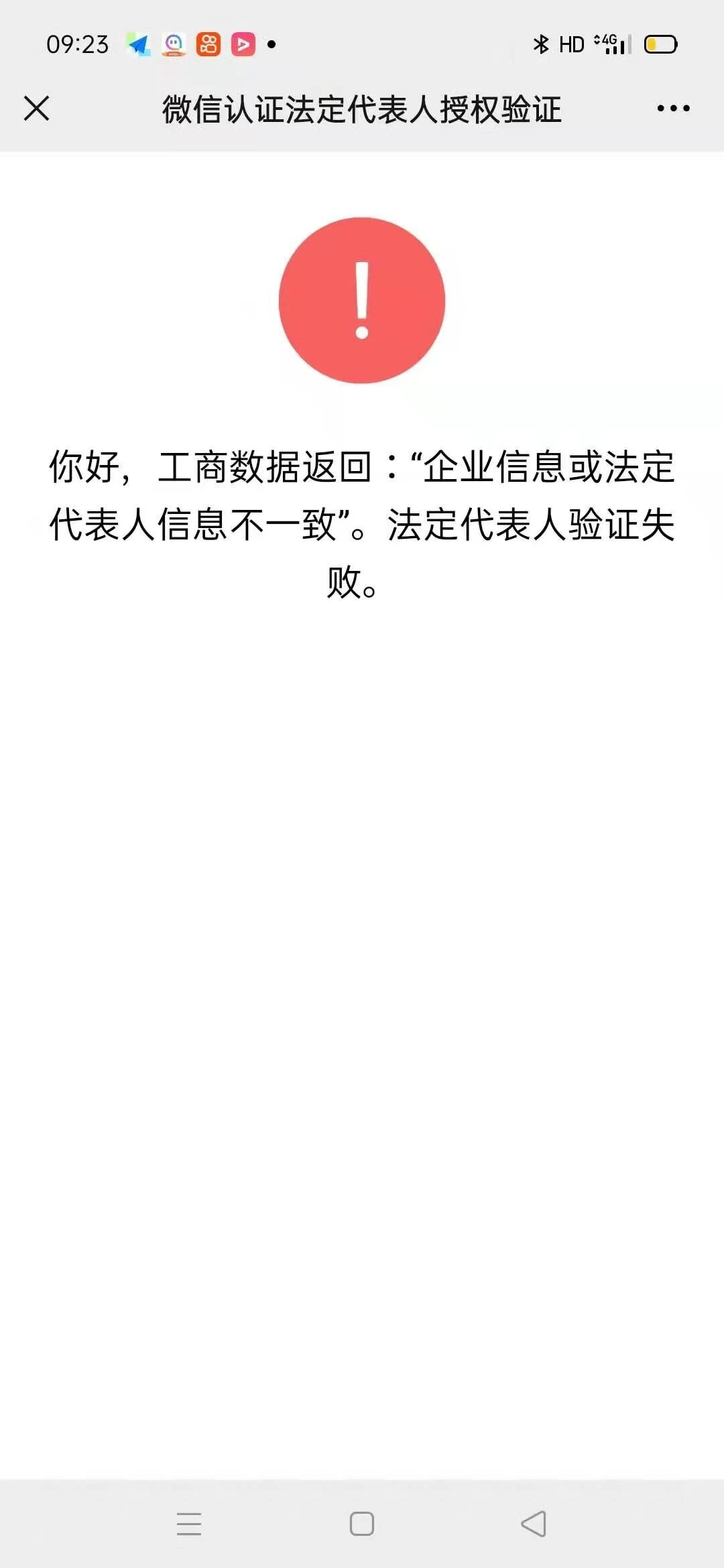 请问下5月18注册的个体工商户,注册认证的时候一直显示企业信息与法人信息不一致,咋办啊!