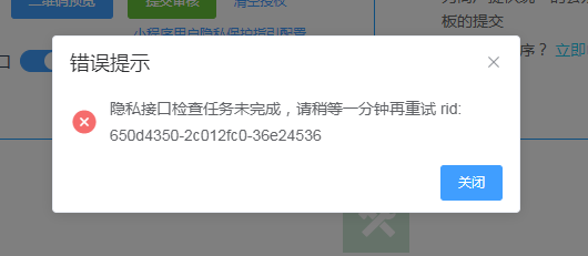 隐私接口检查任务未完成,请稍等一分钟再重试 rid: 650d4350-2c012fc0-36e24536 帮忙解决一下