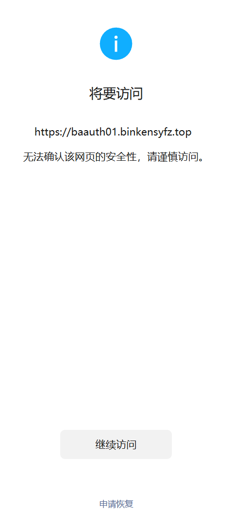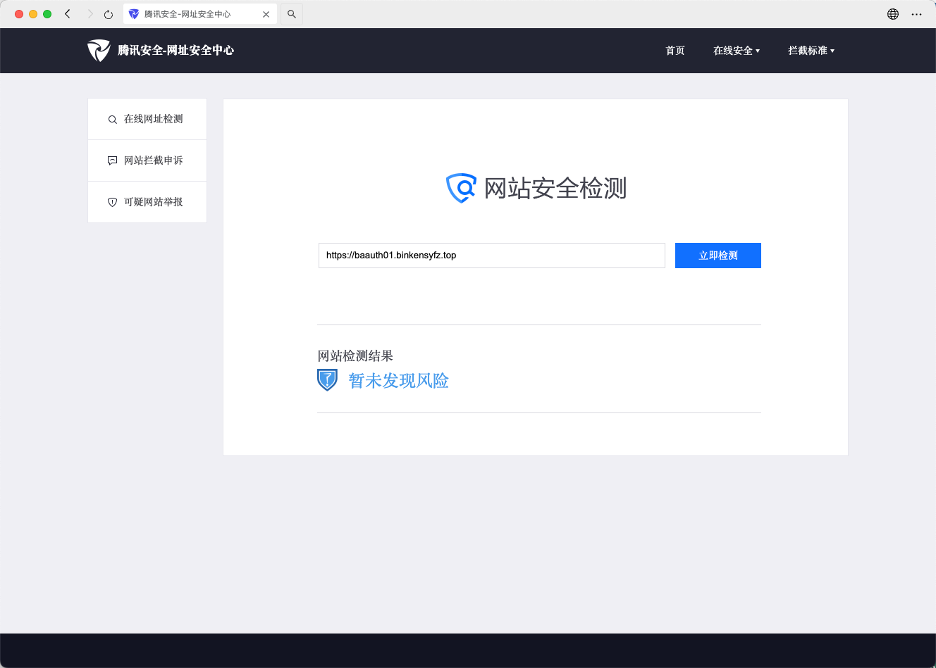 https://baauth01.binkensyfz.top 这个域名被拦截之后一直提示无法确认该网页的安全性,请谨慎访问。,腾讯安全中心提示无风险,为啥微信还会被拦截,而且发邮件后无回复