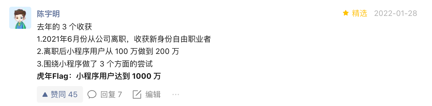 去年,微信开放社区征集了各位社友的 新年 Flag