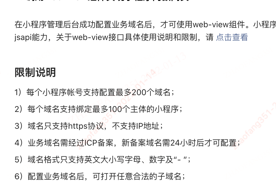 微信小程序配置业务域名,限制1个业务域名被100个小程序关联。