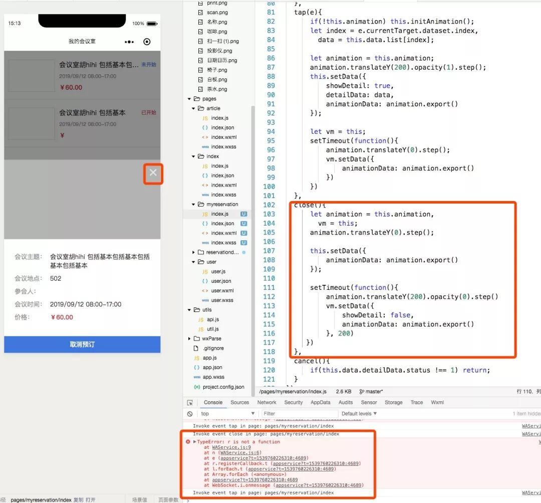 4、尝试将close 中的 animation 不直接使用 thia.animation 改用 wx.createAnimation新创建 没有解决问题