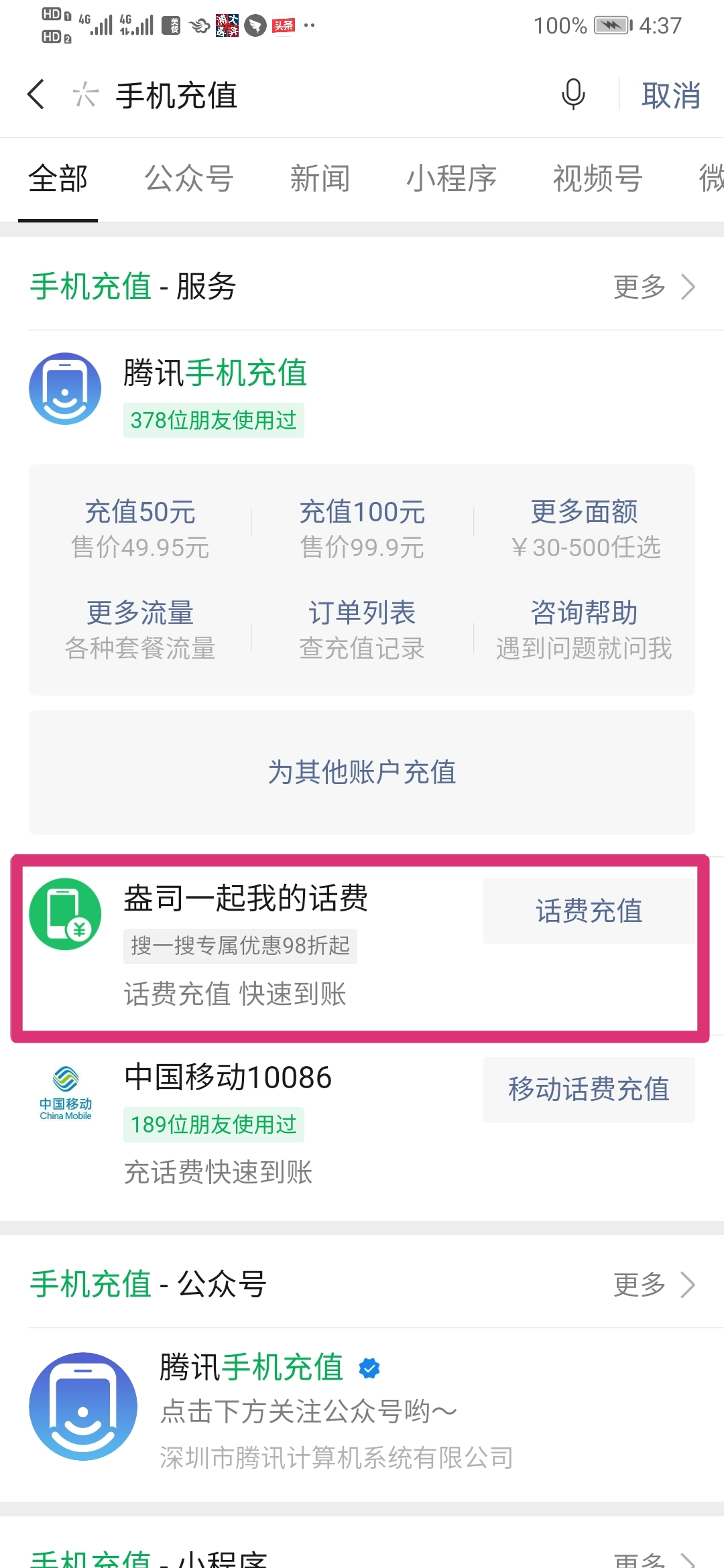 微信搜一搜中搜索手机充值,推荐的这个“盎司一起我的话费”小程序带了一个“搜一搜专属优惠98折起”的标签,这个是怎么设置的的?