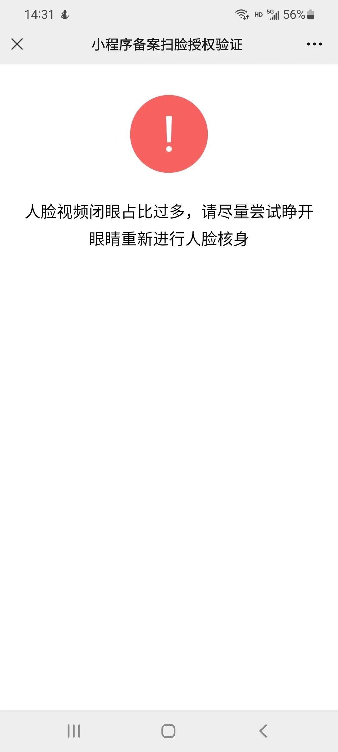 小程序APPID:wx4827b043328c4dd7 法人一直没眨眼,却总是认证不通过,怎么处理?换了个背景也是同样原因认证不通过。