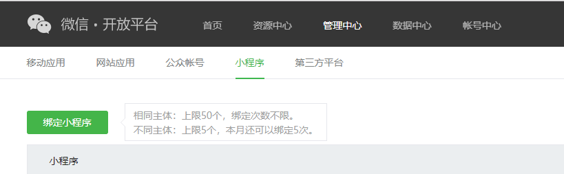 你好请问一下,是选择绑定公众号账号吗?我没看到哪里有选择绑定小程序的东西呢