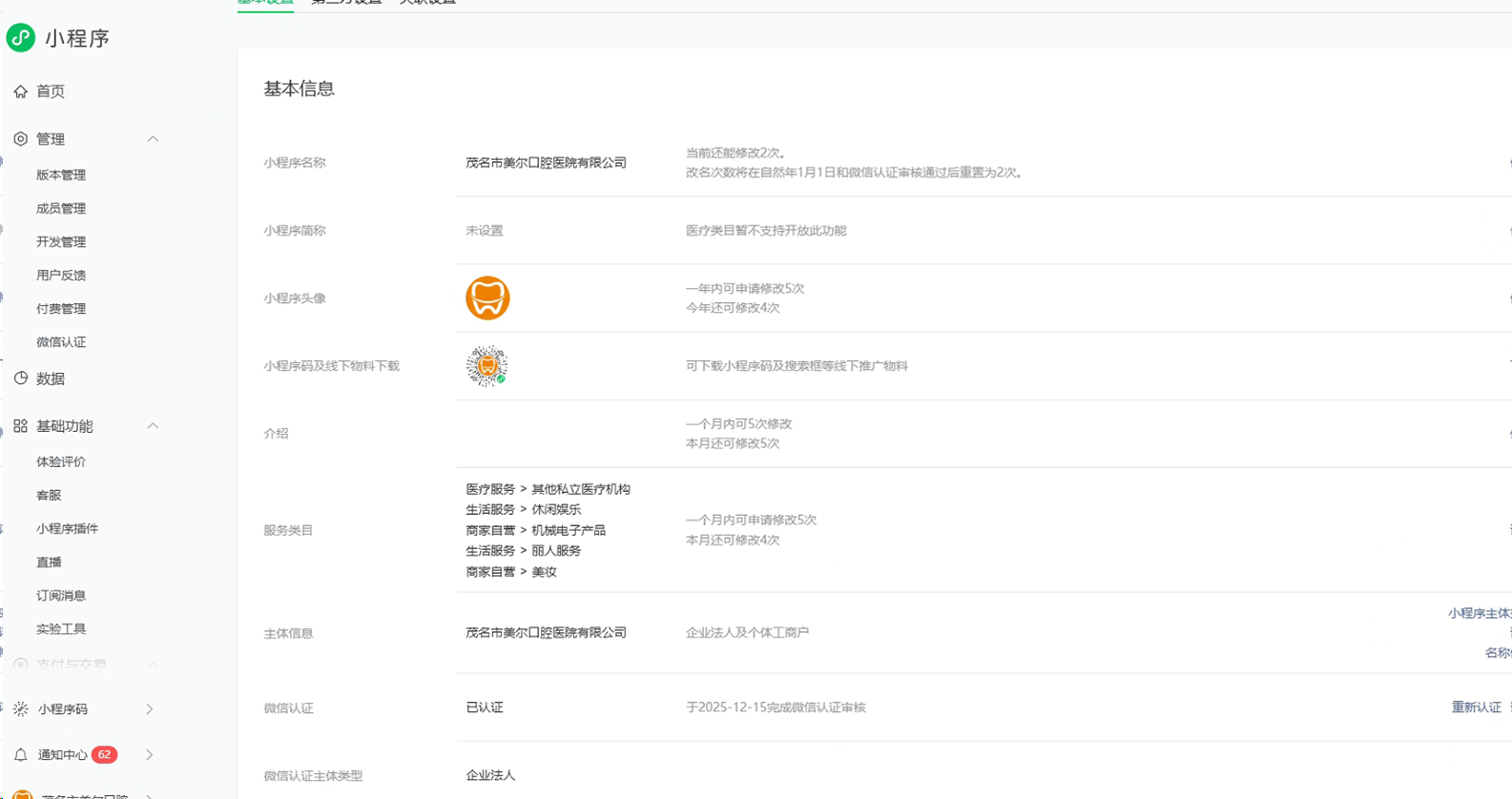 你好,请返回设置-基本信息页面查看小程序信息是否已经填写完毕