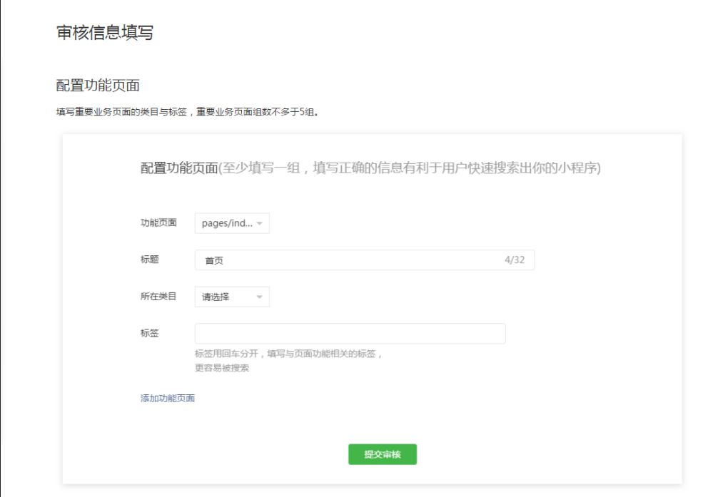 小程序制作发布都是在第三方平台,因此无法手动填写和配置功能页面,但是该有的类目都已经添加完毕并通过审核,但是仍然审核失败,请管理员再次根据情况予以审核,谢谢!