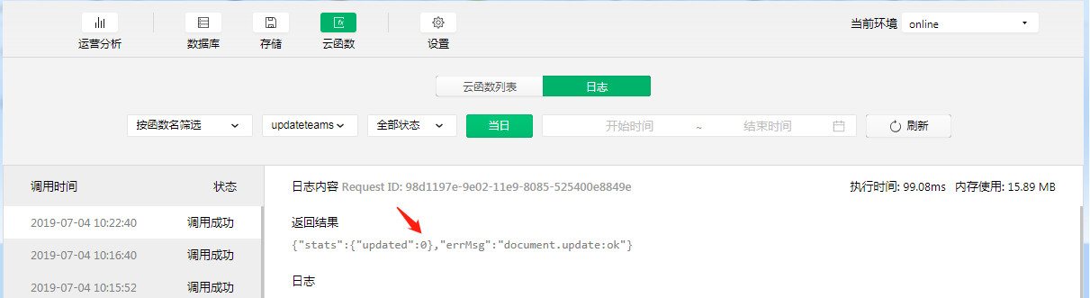 。。。不是, 我问的是, 为什么同样的云函数, 同样的配置, 一个可以更新, 一个又不行, 你知道吗, 一个可以更新成功, 而另一个不能更新成功, 返回 update(0) ,都同样的函数