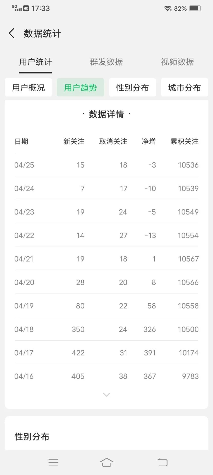 公众号无违规、扣分消息,每增加一个粉丝就自动掉一个,每天都是负增长和取关,已经持续一周了,不清楚什么原因,麻烦客服看一下。