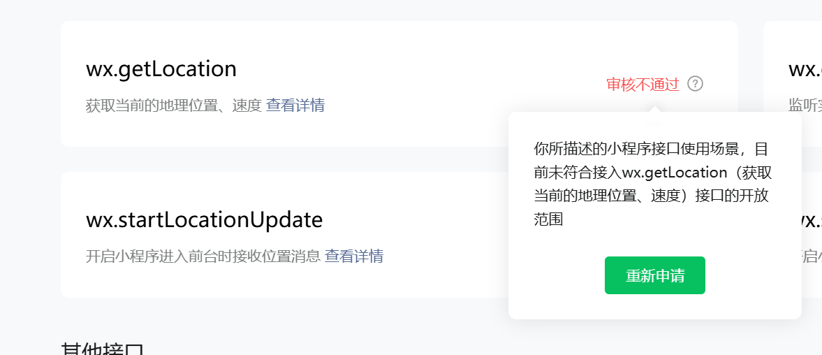 为啥申请wx.getLocation的接口权限一直申请不过?这样的场景都不能申请定位权限么?