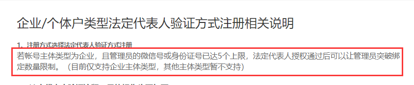 公众号,按官方文档说明,可以通过法定代表人授权,让管理员突破绑定数量限制。